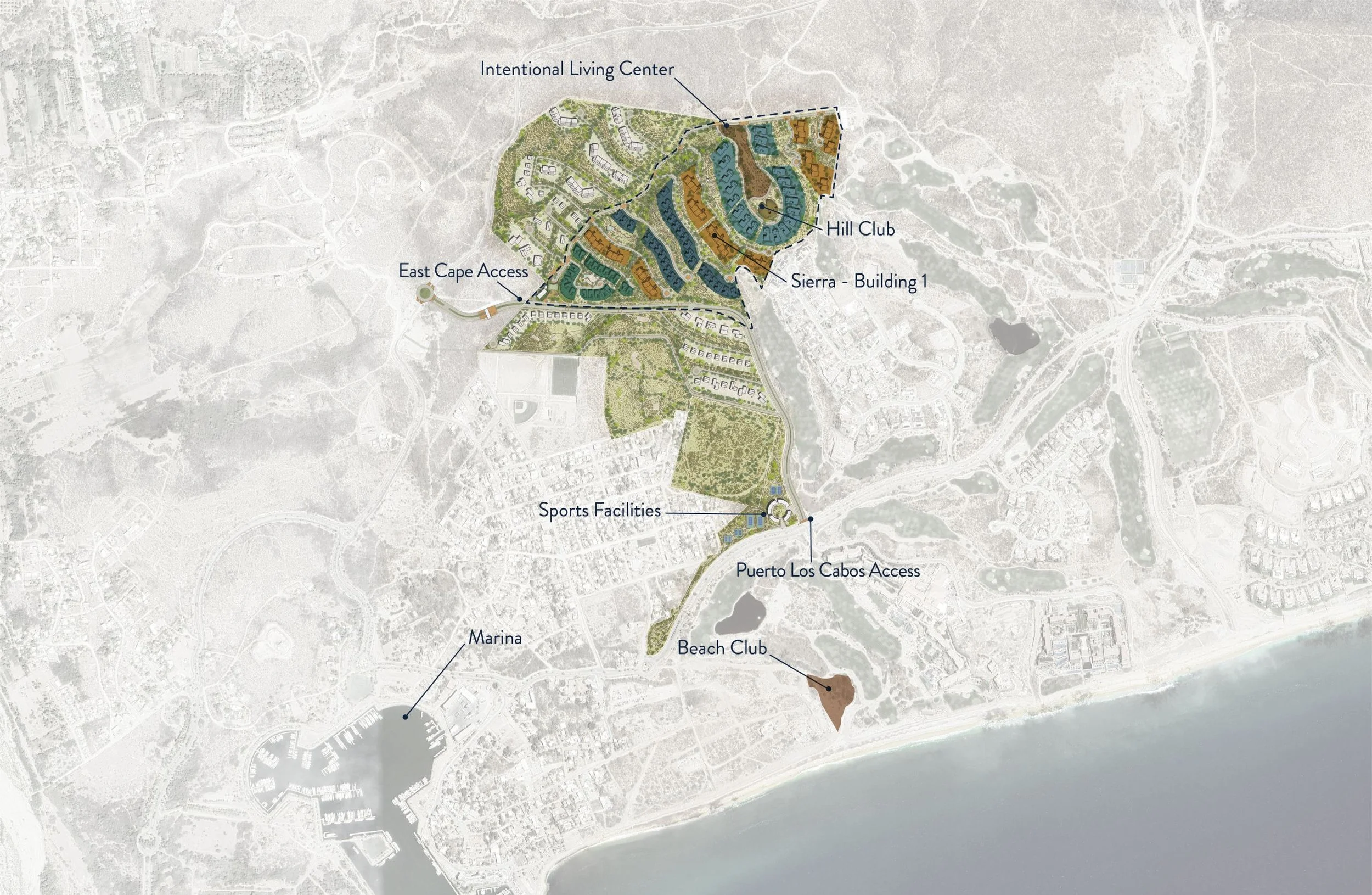 The first phase of development encompasses 26.7 hectares (65 acres) and includes 69 planned homesites comprised of (21) Cima Lots, (28) Montaña Lots and (20) Valle Lots. Additionally the project includes (11) Sendero Residential Buildings and (1) Intentional Living Center.